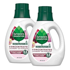 Seventh Generation Concentrated Laundry Detergent, Geranium Blossom & Vanilla, 40 oz, Pack of 2 (106 Loads), 40 Fl Oz (Pack of 2)