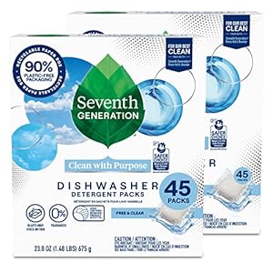 Seventh Generation Dishwasher Detergent Packs for Sparkling Dishes Free & Clear Dishwasher Tabs 45 Count, Pack of 2 (Packaging May Vary)