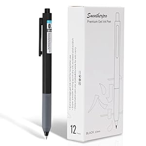 SMOOTHERPRO Premium Retractable Gel Pens 12 Pack 0.5mm Fine Black Refillable Ballpoint Pen Set with Comfortable Rubber Grip Super Smooth Long Lasting Writing (SL120)