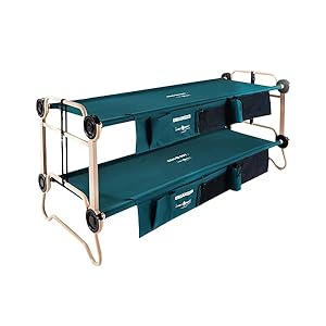 Disc-O-Bed Large Cam-O-Bunk 79 x 28 Inch Portable Versatile Folding Bunked Double Camping Cot Bunk Bed for Adults with 2 Organizers and 2 Carry Bags, No Tool Assembly, Green