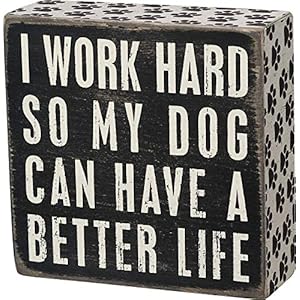 Primitives by Kathy 21490 Pawprint Trimmed Box Sign,Wood, Paper, 5″ Square, Dog Can Have a Better Life , White