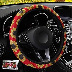 i-Will Sunflower Car Interior D¨¦cor Accessories 15 Inch Universal Steering Wheel Cover Anti-Slip Sweat-Absorption Fabric Stretch-On Wheel Protector (Red)