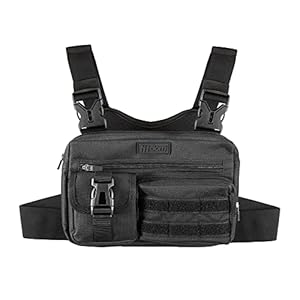 Fitdom Tactical Inspired Sports Utility Chest Pack. Chest Bag For Men With Built-In Phone Holder. This EDC Rig Pouch Vest is Perfect For Workouts, Cycling & Hiking