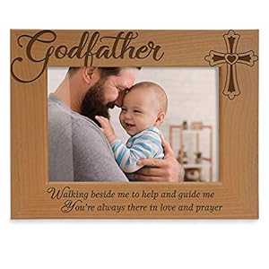 KATE POSH – Godfather Engraved Natural Wood Picture Frame, Cross Decor, Godfather Gift from Godchild, Baptism Gifts, Religious Catholic Gifts, Thank You Gifts (4″ x 6″ Horizontal)