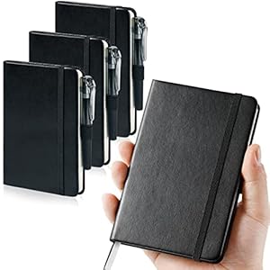 【Hardcover Pocket Journal Notebooks】Each piece contains 3 small notebooks and 3 black pens, black leather cover, strong binding won't crack. These small notebook journal for work Business Travel School Men & Women. There's a "date/page/weather/week" column on the top of every page.