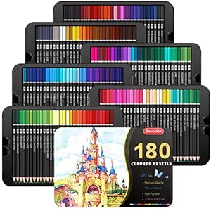 Soucolor 180-Color Artist Colored Pencils Set for Adult Coloring Books, Soft Core, Professional Numbered Art Drawing Pencils for Sketching Shading Blending Crafting, Gift Tin Box for Beginners Kids