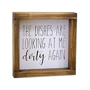 FARMHOUSE INSPIRED-Sign features pure white background and black text. Frames are stained a beautiful dark-walnut wood stain. Just add a little farmhouse charm to your home decor : CUTE MINI SIGN- This small sign measures 7x7 inch. Looks so cute above your kitchen sink. A perfect addtion to your modern farmhouse kitchen.: PERFECT GIFT -Gift this cute mini sign to your mom or your friends they will simply love it : READY TO HANG-All of our signs come with sawtooth hangers on back for easy hanging or stands on its own on a shelf or table.