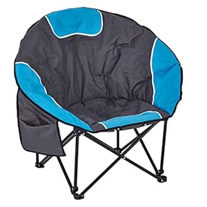 Oversized Padded Moon Round Chair, Camping Moon Chairs for Adults with Storage Bag Carry Bag Portable Heavy Duty Recliner Outdoor Leisure Chair for Beach Hiking Picnic Fishing Sports, Blue