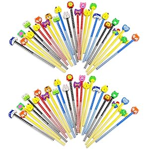 Etmact 50 Pack Assorted Colorful Cartoon Animal Pencil With Eraser Novelty Dot & Stripe Giant Eraser Topper Kids Pencils Kid Pencils Pencil With Eraser Animal Pens Pencils Bulk For Kids Animal Pencill