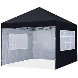 Excellent Design: (1) The canopy has 4 removable sidewalls, 1 doorwall has a smooth running zipper- it's very convenient for you to come in and go out; 2 sidewalls are equipped with elegant and attractive church windows, which are made of super transparent PVC, allow enough light through and guarantee you a clear view. (2) The convenient pop up design makes it much easier to set up the canopy, with no tools required. It can also be easily put away and transported.