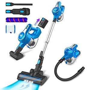 [Large-lasting Rechargeable Battery Vacuum]- This stick vacuum cleaner cordless built-in 2500 mAh large capacity 8-cell lithium battery, up to 45 mins runtime on standard mode(12KPa), 20 mins on Max mode(28KPa). The rechargeable vacuum cordless can clean a whole house on a single charge, great for daily quick cleaning. Remove and replace the battery with one button.