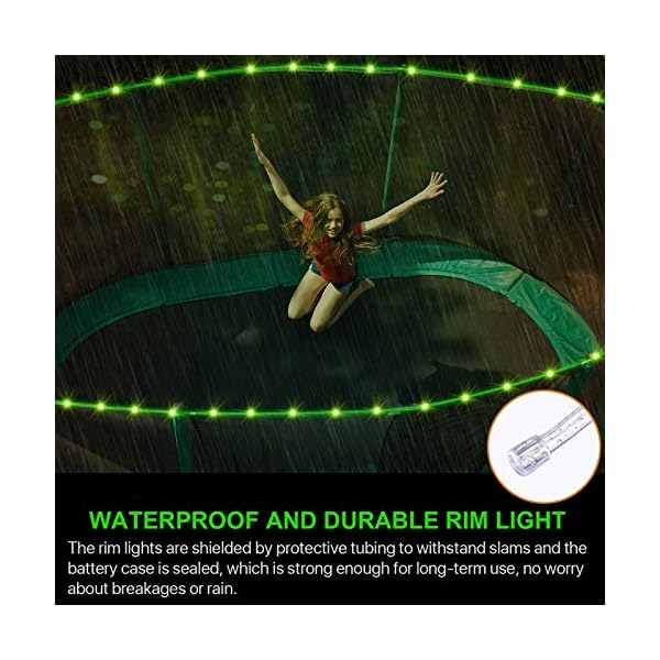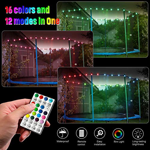 【LIGHT UP AT NIGHT】: Our LED Strip Light can remove darkness from the rim of the Trampoline hoop and have up to sixteen unique light patterns. It permits you to enjoy the fun of playing Trampoline at night.