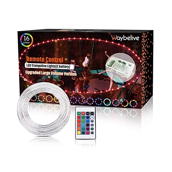 【Upgraded Large Volume Version】 LED Trampoline Lights,Remote Control Trampoline Rim LED Light for Trampoline, C Battery Box, 16 Color Change, Waterproof, Bright to Play at Night Outdoors