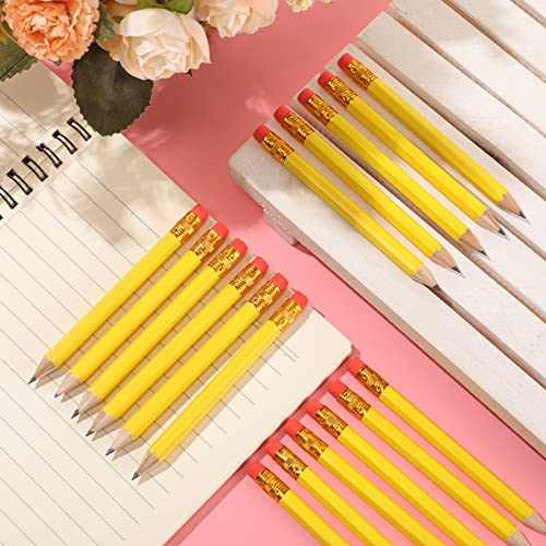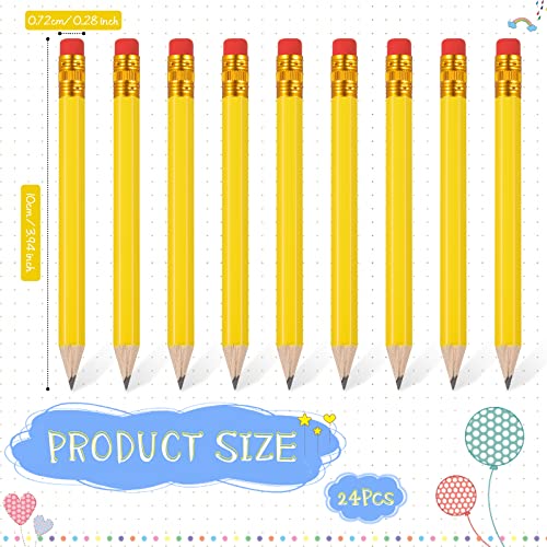 24 Pieces Half Pencils Golf Pencils with Eraser Easy to Hold Graphite HB Pencils for Baby Shower Bridal Shower Wedding Golf School Office (Yellow)