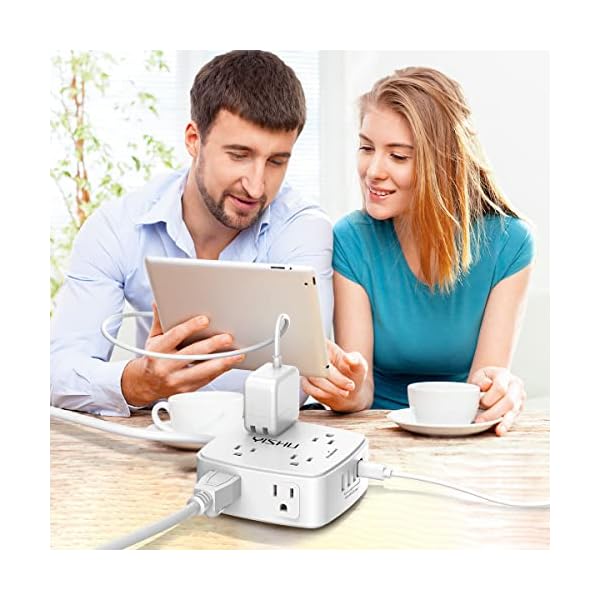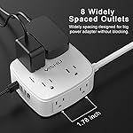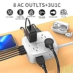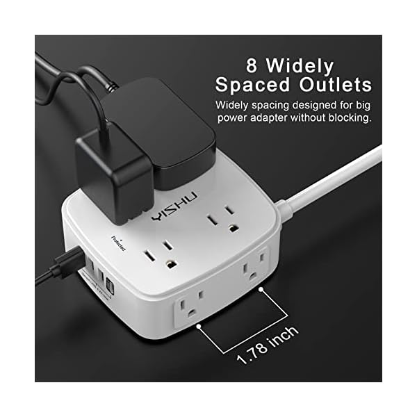 【Surge Protector Power Strip with 3 Side Design & Wide Space】- 3-side design that makes it easier to make the plugs not covering any outlet, and the 8 AC outlets with 1.8 inches long space in between, larger than standard 1.5-inch socket. Larger spacing makes it easier to use for a wide variety of equipment.The compact design saves more space, suitable for the home, place of job, and college dorm room.
