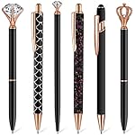 6 Pcs Ballpoint Pens Set Metal Crystal Diamond Pen for Journaling Black Ink Ballpoint Pens Liquid Sand Glitter Pen Fancy Pens Gifts for Woman Girls Teacher School Office Home (Black)