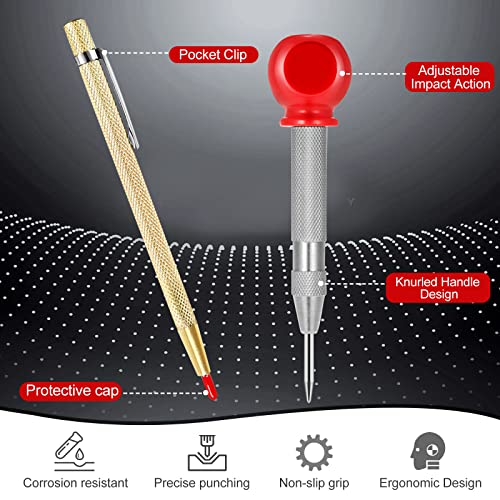 【Automatic Center Punch Tool】:the automatic center punch is made of solid and durable brass, come with deep knurling on the surface, which helps offer more accurate handling and regulate by one hand. suitable for various tasks, ideal use for marking, punching, pricking and scribing on wood, metal, glass, plastic, leather or wall surface and so forth.