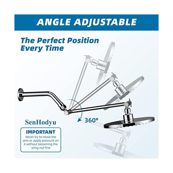 🚿BRAND ADVANTAGE – SenHodyu’s Adjustable Shower Arms are with no questions asked guarantee. SenHodyu has been committed to developing bathroom products for a few years. We are committed to provide our customers the premium shower and bathroom hardware products with Better quality products, More favorable prices.