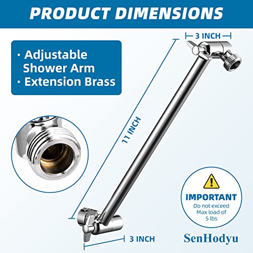 Adjustable Shower Head Extension Arm by SenHodyu – 11″ Solid Brass Shower Arm Extension with Lock Joints, Universal Connection to Rain Shower Heads, Easy to Install (Luxury Polished Chrome)