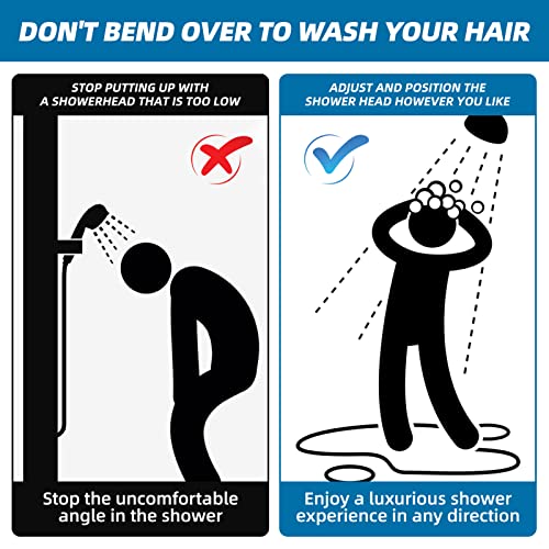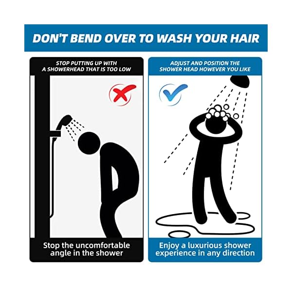 🚿EASILY ADJUSTABLE – Our long Shower Arm Extension lets you easily adjust the shower to your desired setting. Raise a low-hanging rainfall shower head for more showering coverage or lower a handheld shower head to more easily reach it at the same time as maintaining water glide rate.