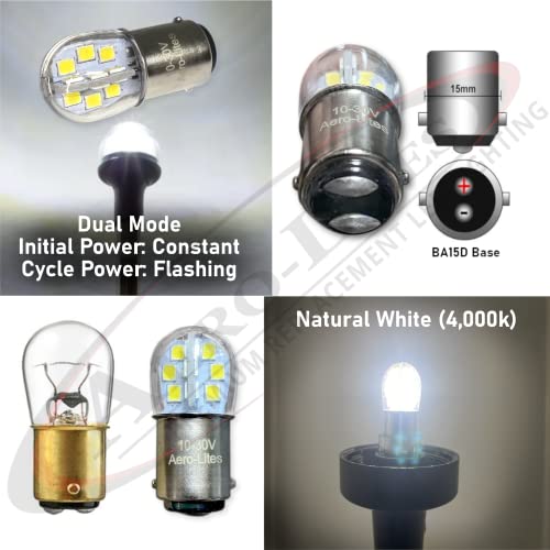 Aero-Lites.com | Dual-Mode (Constant/Flashing) LED Replacement Bulb for #1004 12V Marine Anchor Light or Stern Light | Bulb Base: Ba15D Marine Bayonet; Light Color: Natural White- 4,000k