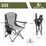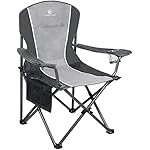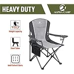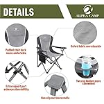 ALPHA CAMP Oversized Camping Folding Chair Heavy Duty Steel Frame Support 350 LBS Collapsible Padded Arm Chair with Cup Holder Quad Lumbar Back Chair Portable for Outdoor/Indoor
