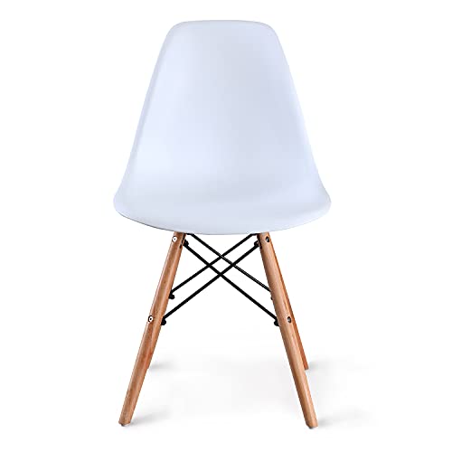 Amazon Basics Modern Dining Chair Set, Shell Chair with Wood Legs for Kitchen, Dining, Living Room – Set of 4, White