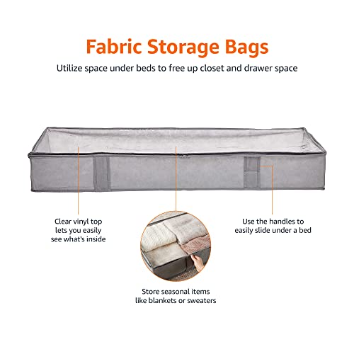 Amazon Basics Under Bed Fabric Storage Container Bags with Window and Handles – 2-Pack, 18 x 42 x 6 Inches, Gray