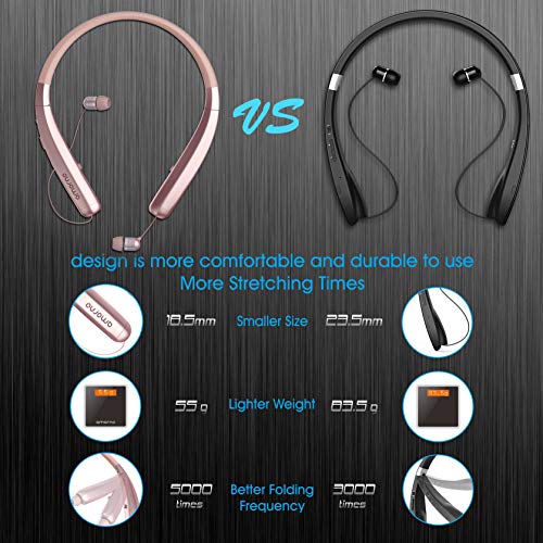[Neckband Design & Vibration Reminder]: The excellent neckband design assist you to wear the headphones on your neck comfortably and perfectly, enjoy music on the go. When a phone comes, the foldable Bluetooth headphones will remind you with vibration and you’re going to never miss any call even you are in a noisy environment and the earplugs aren’t in your ears, in reality sets you hands free.