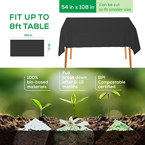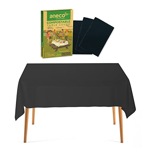 ANECO 100% Compostable Table Cover 3 Count (54” x 108”) Disposable Tablecloth Extra Thick, Durable and Water Resistant with BPI Certified (Black, 54″x108″ – Pack of 3)