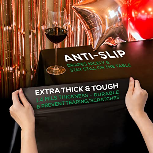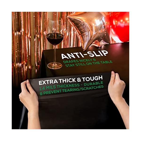 🌱 𝗣𝗘𝗥𝗙𝗘𝗖𝗧 𝗙𝗜𝗧: ANECO compostable table cloths has an extra-large dimension (54” x 108”) makes this excellent disposable table cloths covers any rectangular, oval or round table up to 8ft. There are 3 counts of black rectangle tablecloth per pack, affordable and decent.