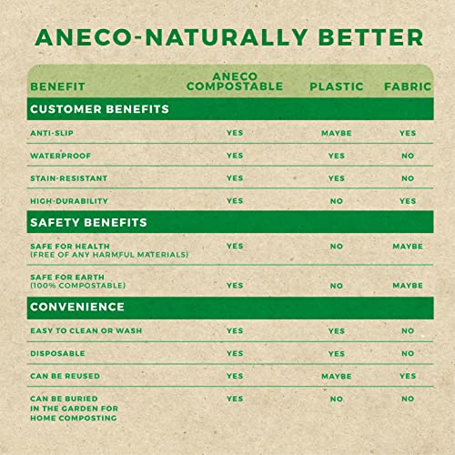 🌱 𝗦𝗨𝗣𝗘𝗥 𝗗𝗨𝗥𝗔𝗕𝗟𝗘 𝗔𝗡𝗗 𝗟𝗘𝗔𝗞𝗣𝗥𝗢𝗢𝗙: If you are facing leak problems and are not satisfied using disposable tablecloth in the past, try ANECO Compostable table covers – durable and 100% waterproof tablecloth. Anti-slip, water-resistant, and spill-resistant, our compostable table cloth will give you excellent protection for your precious tables from spills, stains, and scratches.