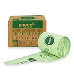 ANECO 100% Compostable Trash Bags Biodegradable Bag Extra Thick OK Compost Home BPI and TUV Certified (13 Gallon, 50 Count)
