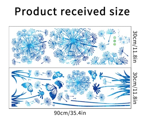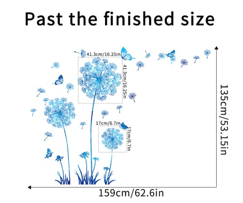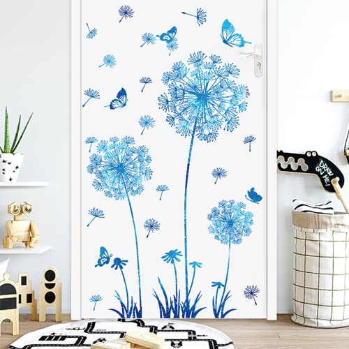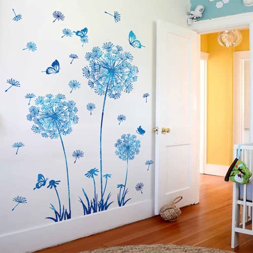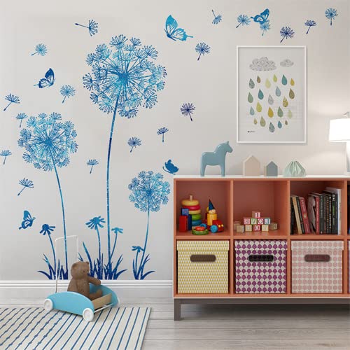 Arawat 2 Set Dandelion Wall Decals Blue Flower Stickers Murals Butterflies Wall Decor for Bedroom Office Bathroom Living Room Floral Wall Decals Removable Wall Art Decoration Peel and Stick Room Wall Decor