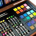Art 101 Doodle and Color 142 Pc Art Set in a Wood Carrying Case, Includes 24 Premium Colored Pencils, A variety of coloring and painting mediums: crayons, oil pastels, watercolors; Portable Art Studio