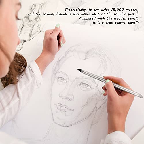 AUAUY 2PCS Metal Inkless Pencil, Infinity pencil, Reusable Everlasting Pencil, Replaceable Nib Pencil with 2 Replaceable Nib for Writing Drawing Students Home Office School Supplies(Black & Silver)