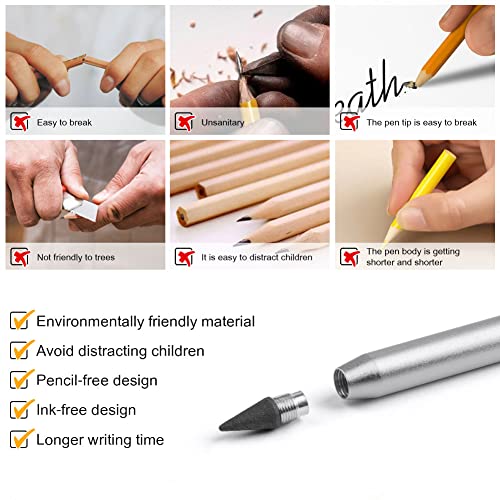 🌸【INKLESS PENCIL SET】This everlasting pencil is made of graphite, with clear and long-lasting writing, which can save you the time of sharpening or adding ink, and avoid the trouble of sharpening pencils, the appearance is stylish and beautiful, saving time and energy, making your Children pay more attention when studying. Sufficient quantity can meet your daily writing and replacement needs.