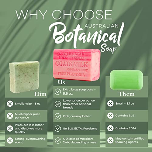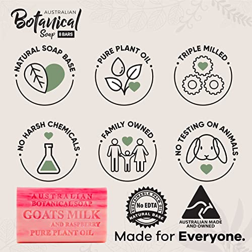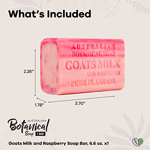 Australian Botanical Soap, Goats Milk with Raspberry 6.6 oz (187g) Soap Bars | All Skin Types | Shea Butter Enriched – 1 Count