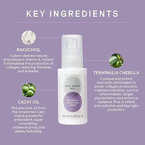 Balance Me Bakuchiol Smoothing Serum, Gentle Retinol Alternative, Anti-Ageing, Anti-Pollution & Blue Light Protection, For All Skin Types, Natural, Vegan & Cruelty Free, Made In UK, 1.01 Fl Oz