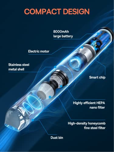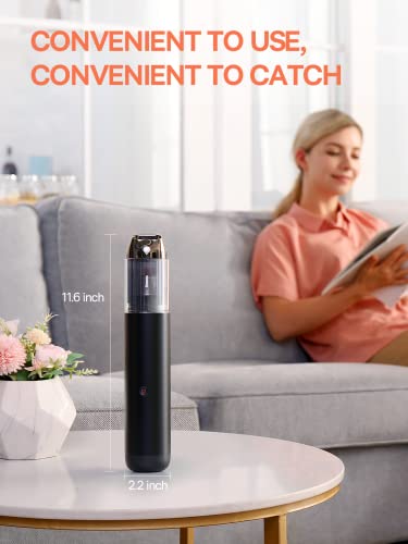 POWERFUL, PRACTICAL YET COMPACT: The sleek and compact design of car vacuum can reach every corner of your house and car without steps to change different nozzles. LED Light helps you clean dark corners