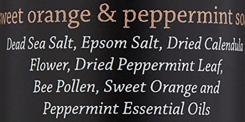 ‘BEE ENERGIZED’: 2 oz. Dead Sea Salt, Epsom Salt, Dried Calendula Flower, Dried Peppermint Leaf, Bee Pollen, Sweet Orange and Peppermint Essentials Oils