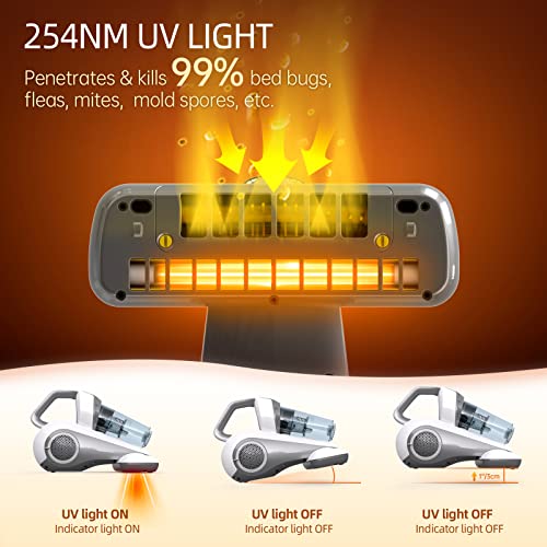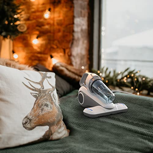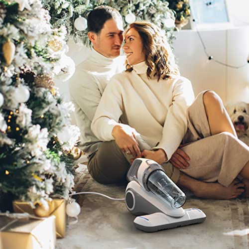 Handheld Bed Vacuum Cleaner Machine, Mattress Vacuum Cleaner with 15KPa Suction, UV Light, Washable HEPA Filter for Deep Clean Fur/Hair/Dander/Dust on bed, sofa, couch, car seat, blanket, carpet, and other fabric surfaces.