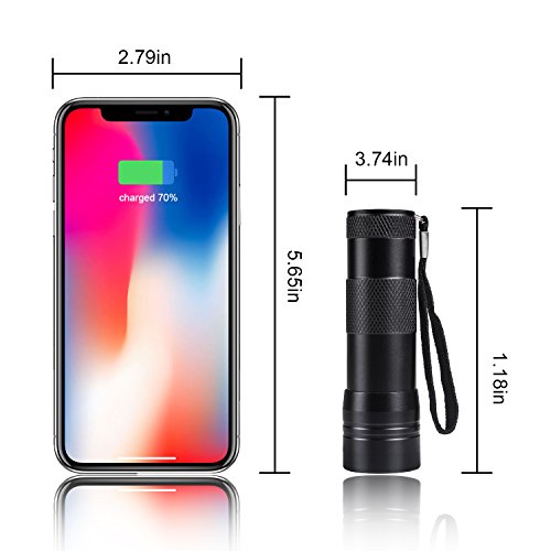 Aluminum UV blacklight flashlight and Easy to Carry – Made out of Aluminum Alloy,lightweight but very durable,mini size for you’re taking it anywhere easily