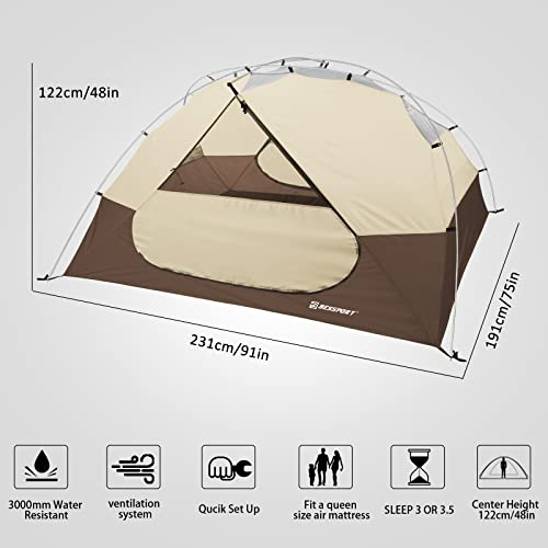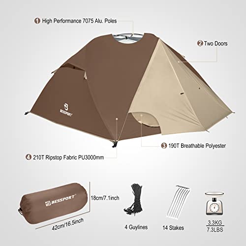Bessport Camping Tent 3 Person Tent Lightweight Waterproof Two Doors Easy Setup Tent for Outdoor, Hiking Mountaineering Travel