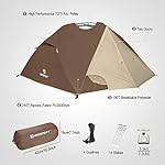 WEATHER RESISTANT- Seam taped Construction makes an impenetrable barrier against Rain and prevents leakage. Welded floor Design elevates the bottom of the backpacking tent to protect you from wet grounds; full-coverage rainfly for added protection against rain.