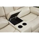 - Each piece of the sofa set features built-in recliners with a total of four.