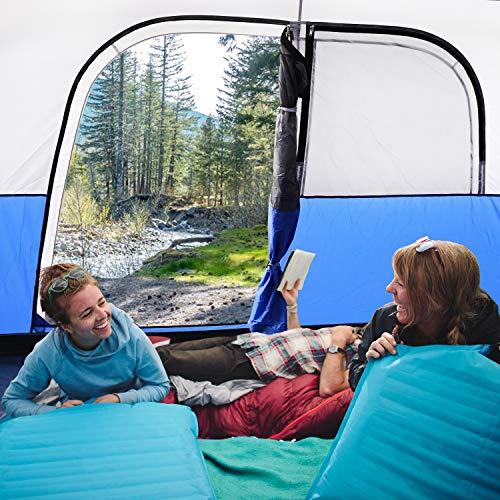 【Spacious & Private】 The 8-person instant cabin tent is 13ft x 9ft and fits two queen-size mattresses easily with quite a lot of extra space, you’ll be able to move around more freely with a peak height of 78 in with a peak height of 78 in. The included room divider can divide this camping tent into two private sleeping areas or a bedroom and living space, which have added privacy to a point when you wish to have.