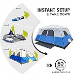 【One Minute for Easy Camp】 Set up the camping tent in merely 60 seconds. Our instant cabin tent is not only roomy, weather-proof, and sturdy, the installation is a breeze. The pre-attached poles collapse easily in place to ensure you are never scrambling to decipher which pole goes where. Our unique approach makes the assembly simple and intuitive. So, spend more quality time with your family or group at the campsite, taking any complex assembly out of the equation.