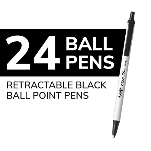 BIC Clic Stic Black Retractable Ballpoint Pens, Medium Point (1.0mm), 24-Count Pack, Round Barrel Design for Comfortable Writing