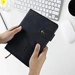 ★ Gusseted DESIGN – Gusseted Pocket DESIGN and Cardboard Bound Cover,metal buckle helps keep notebook securely closed, making it easy to write in the notebook from near to anywhere. This notebook provide you a prime quality writing experience.Expandable Gusseted pocket for stashing loose notes,business cards, receipts, mobile phone, or other small items.